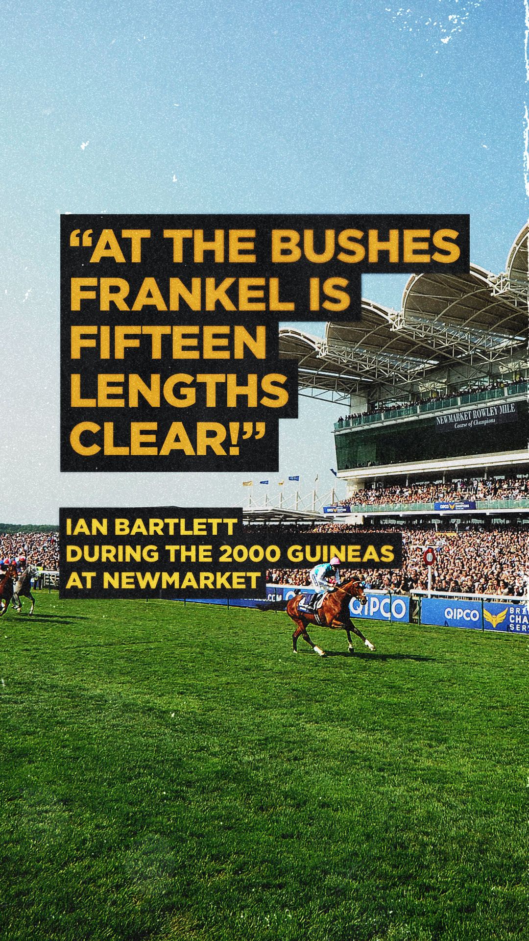 It was with a mixture of delirium and disbelief that course commentator Ian Bartlett, during the 2000 Guineas at Newmarket, exclaimed that “at the bushes Frankel is FIFTEEN LENGTHS CLEAR!” The performance was the most dominant and destructive than many of us have ever seen, or will ever see, in a Classic.
