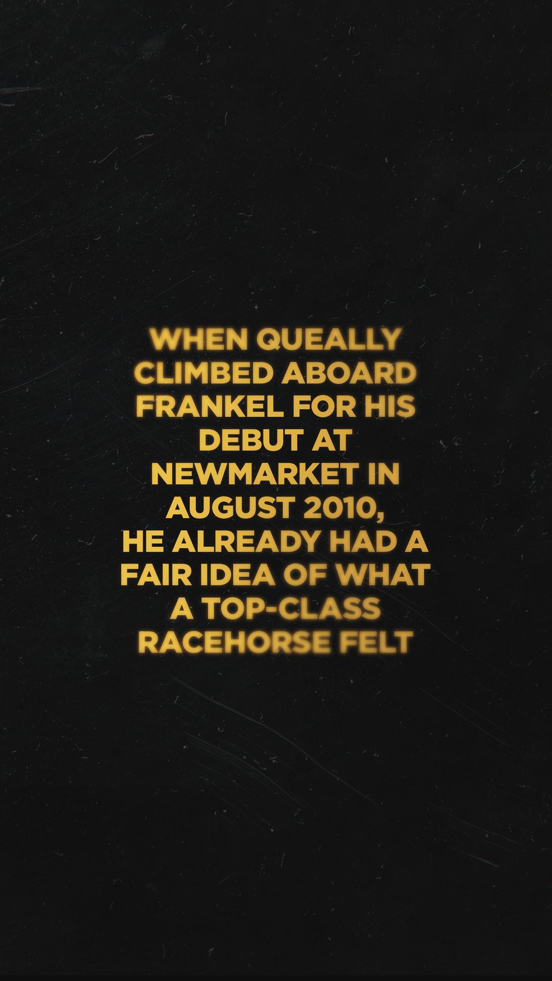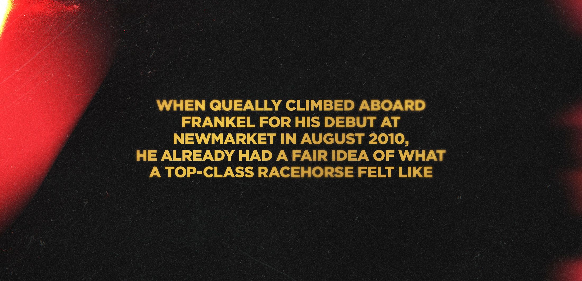 When Queally climbed aboard Frankel for his debut at Newmarket in August 2010, he already had a fair idea of what a top-class racehorse felt like. What he didn’t know was that Frankel would prove to be an even higher level.