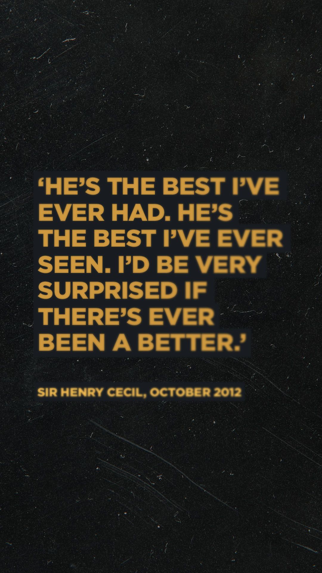 Cecil, who was knighted in 2011 for his services to racing, believed that it was Frankel that kept him going through the pain of his illness. Undoubtedly, the horse provided a perfect final chapter in the great trainer’s career.