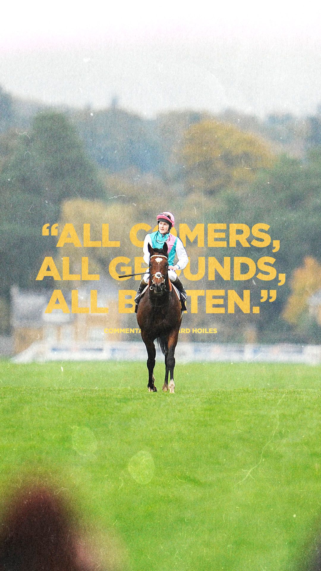 Wolver Hollow, Bolkonski, Wollow, Kris, Le Moss, Ardross, Slip Anchor, Oh So Sharp, Reference Point, Diminuendo, Indian Skimmer, Old Vic, Belmez, Commander In Chief, Bosra Sham, Reams Of Verse, Ramruma, Oath, Royal Anthem – his list of champions grew almost with every season and the initials H.R.A.C on any saddle cloth was a stamp of guaranteed quality.